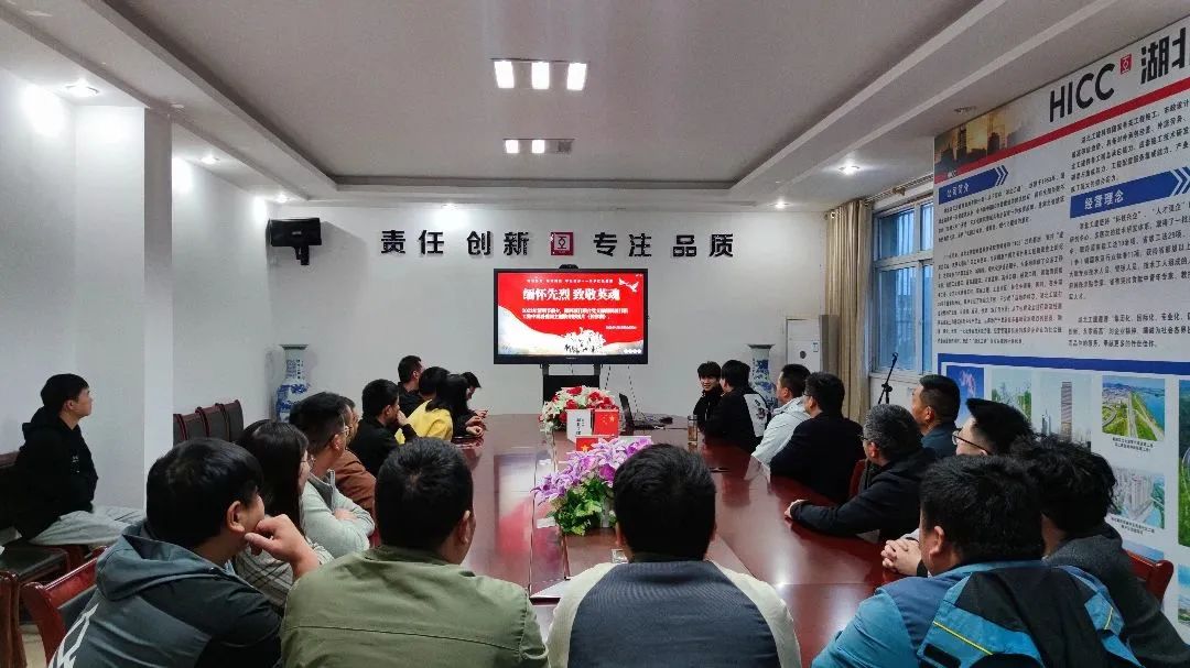 4月4日晚,鄖西項目聯合黨支部在項目部一樓會議室組織職工集中觀看愛國主題教育影片《長津湖》。