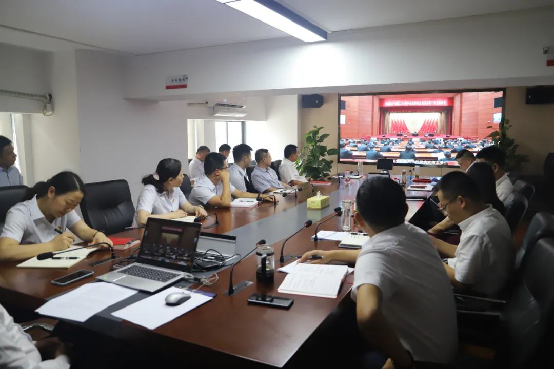 公司機關(guān)主會場參會人員集中觀看警示教育片。